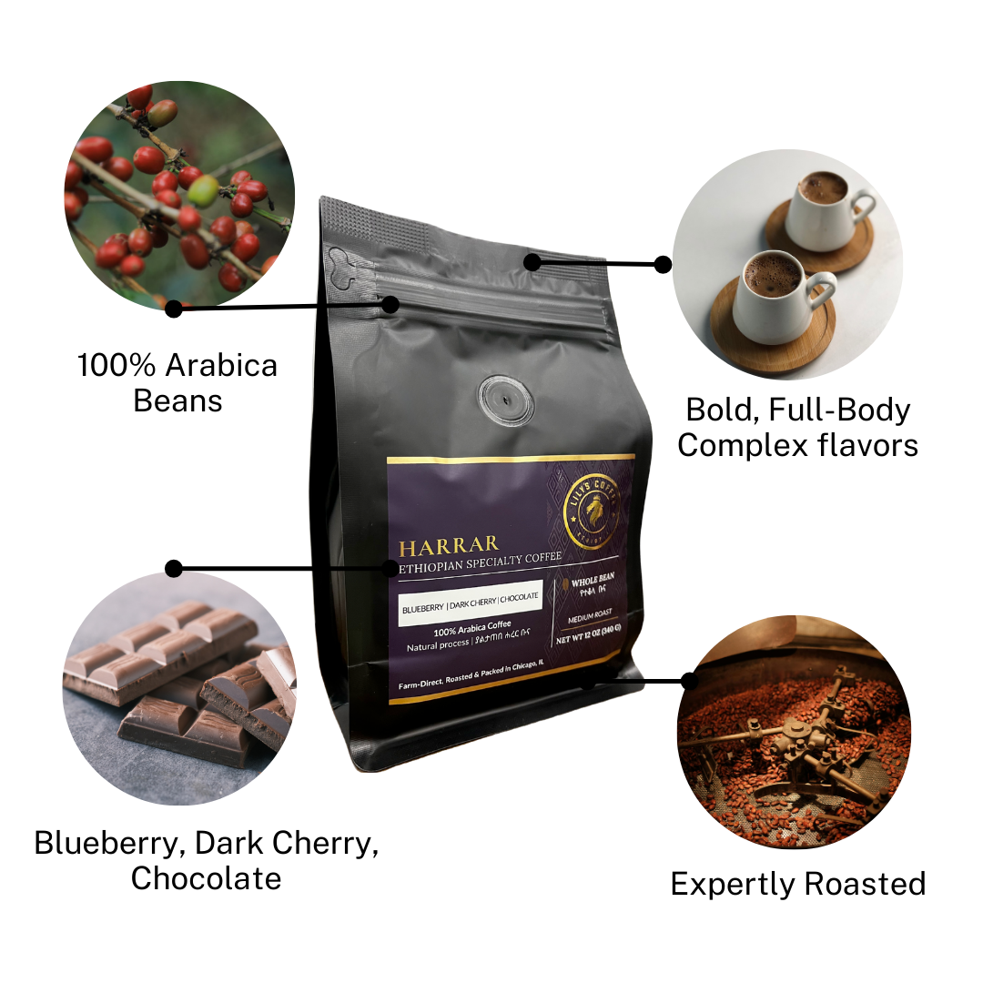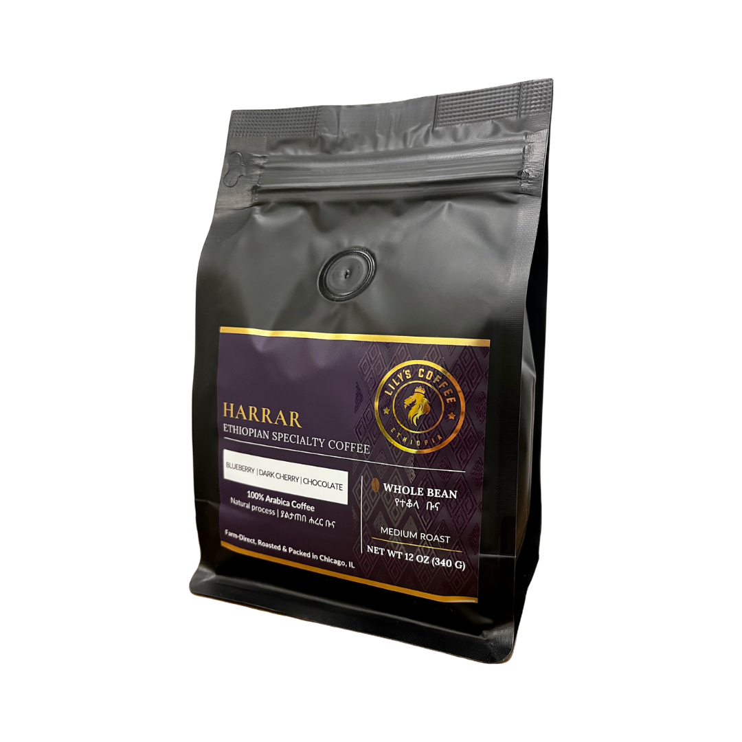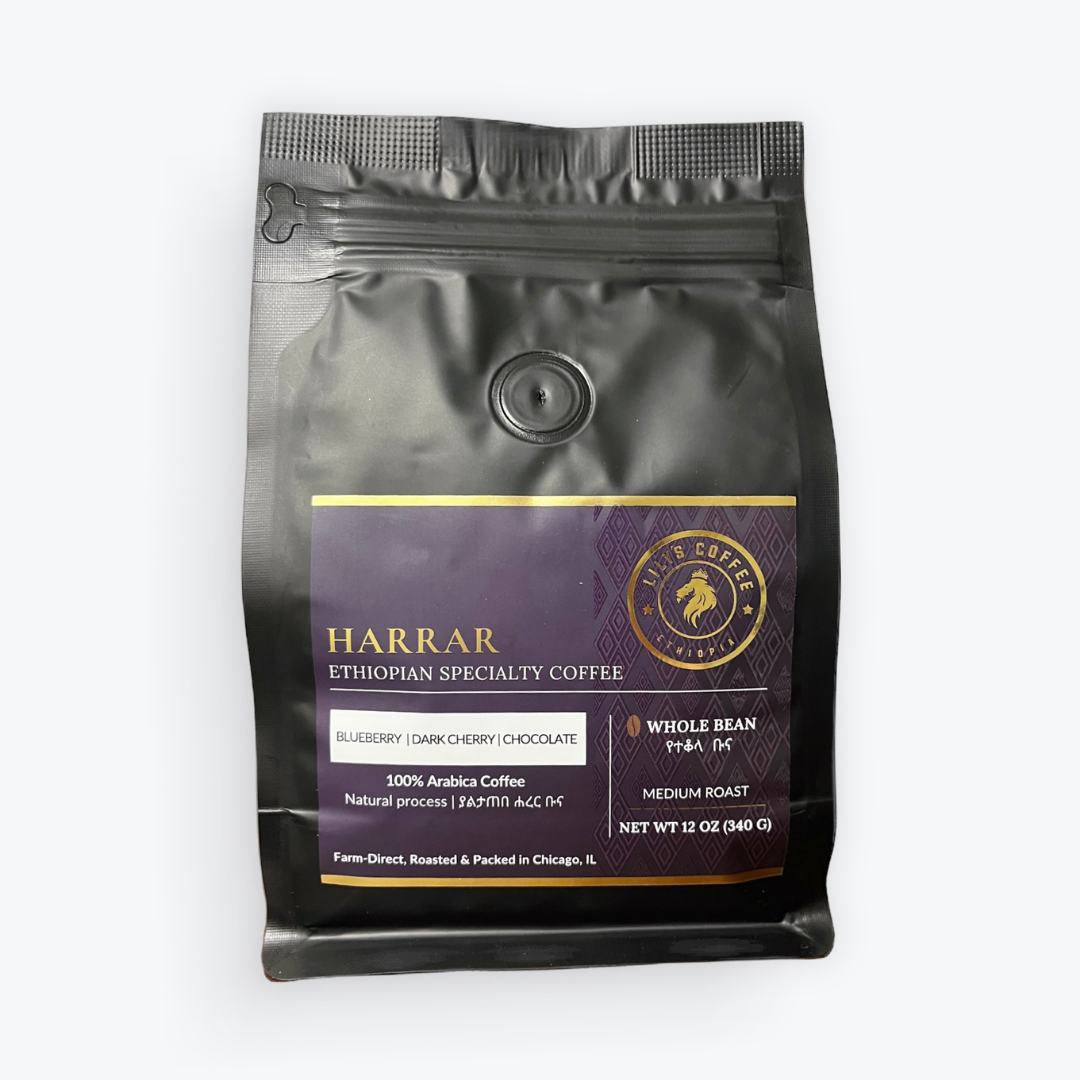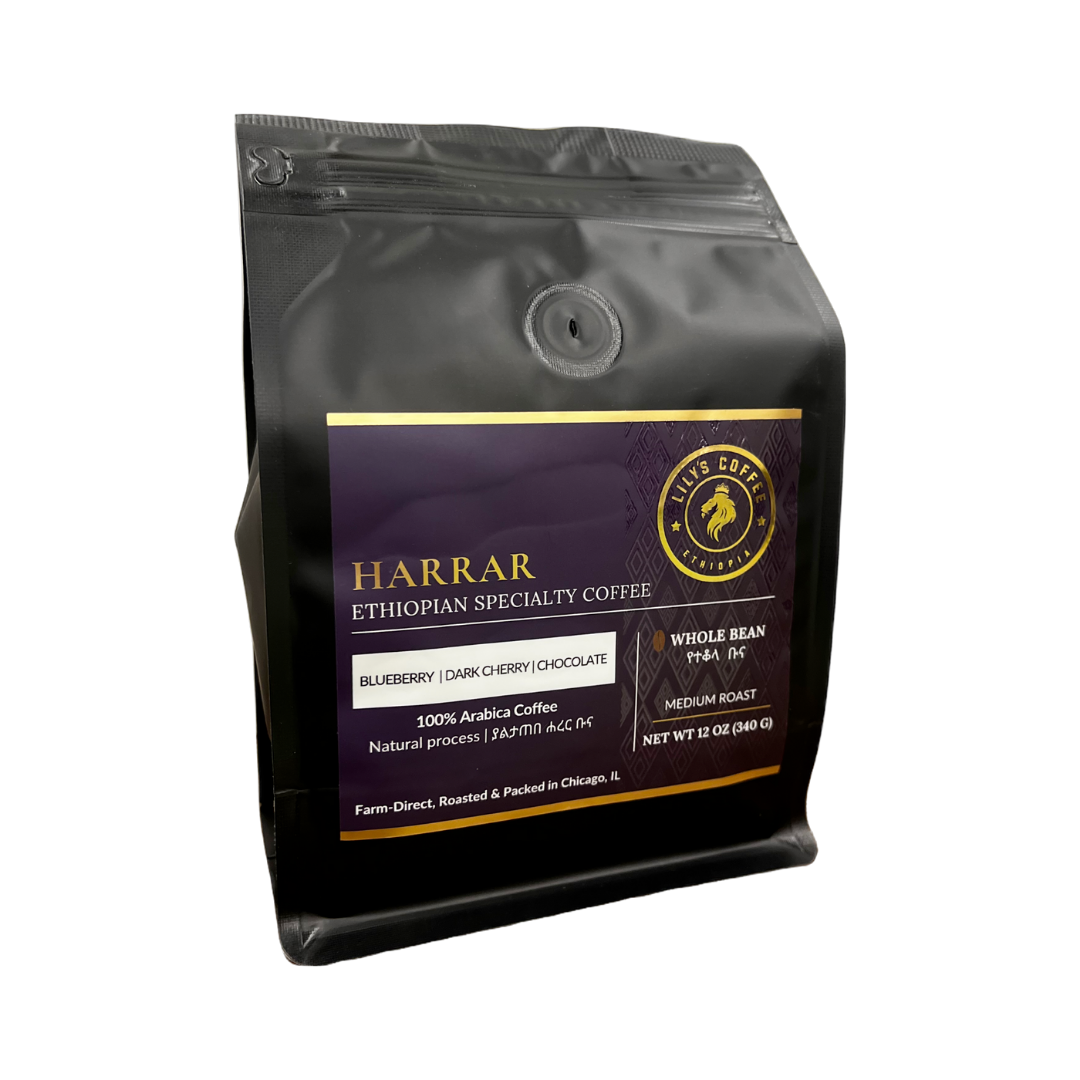 Harrar is one of the oldest coffee producing regions located in the Eastern Highlands of Ethiopia’s Oromia Zone. Harrar coffees are Ethiopian heirloom Arabica beans, dry-processed and sundried on raised beds. Farmed at 1,400-2,000 meters of elevation, our Longberry Harrar coffee has a distinct blueberry flavor and a balanced sweet citrus acidity with a soft spice. As one of the finest Ethiopian coffee, our Longberry Harrar is excellent when brewed straight and well suited for espresso blends, as its blueberry sweetness shines through in milk-based drinks.